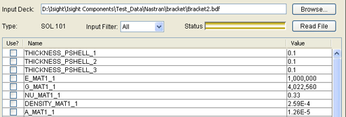 Select the parameters you want to use in your Isight model by doing any of the following: