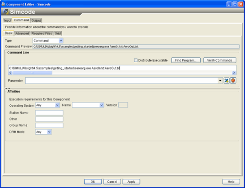 The Simcode Component Editor appears. By default,