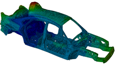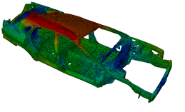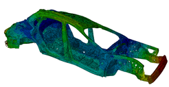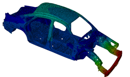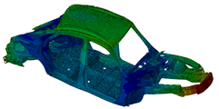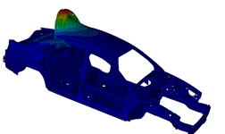 The gradient of three eigenfrequencies over 15 iterations and the mass constraint are illustrated in the above figure. The constraint is fullfilled. In this example, all calculated natural frequencies are considered for the objective function using the Kreisselmaier-Steinhauser formulation, and the definition is as follows: DRESP ID_NAME = all_lowest_eigenfrequencies DEF_TYPE = SYSTEM TYPE = DYN_FREQ_KREISSEL LC_SET = MODAL, ALL, ALL END_ OBJ_FUNC ID_NAME = maximize_eigenfrequencies DRESP = all_lowest_eigenfrequencies TARGET = MAX END_ If one has requested 10 eigenfrequencies in the finite element input model but only the first 5 eigenfrequencies are to be used in the optimization definition, then the design response for 5 eigenfrequencies is defined as follows: DRESP ID_NAME = all_lowest_eigenfrequencies_1_5 DEF_TYPE = SYSTEM TYPE = DYN_FREQ_KREISSEL LC_SET = MODAL, ALL, 1-5 END_ OBJ_FUNC ID_NAME = maximize_eigenfrequencies_1_5 DRESP = all_lowest_eigenfrequencies_1_5 TARGET = MAX END_ | ||||||||||||||||||